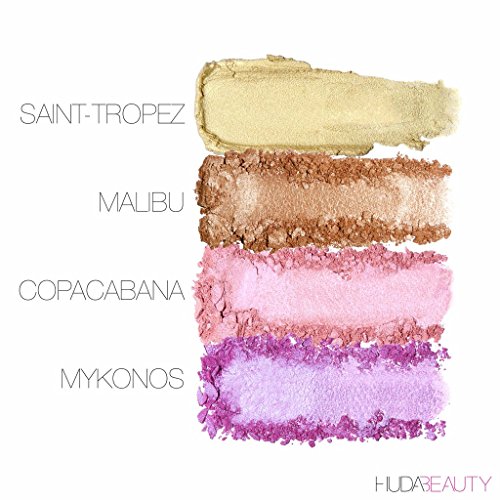The ultimate Insta-Glow is now in everyone's grasp. Inspired by Huda's hack of layering oil with powder highlight to amplify her glow, this palette is packed with 2 different textures: - the Melted Strobe, a pearlescent creamy formula enriched with Karite Butter to create a flawless lit-from-within canvas for layering powders. - 3 light catching pressed pearls staggered in complimentary tones to give you a sculptural, 3D radiance.Feature