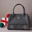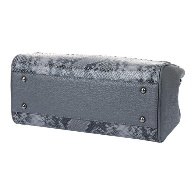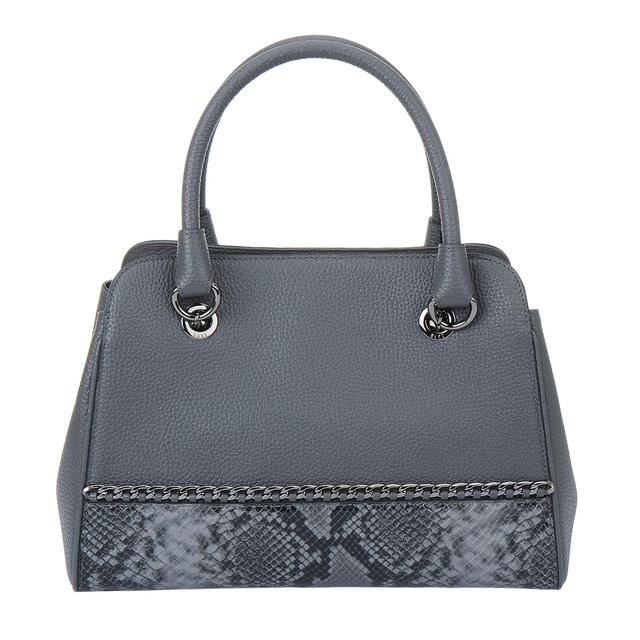 하단 부분에 뱀피 프린트를 배색하고 체인을 장식하여 포인트를 준 토트백입니다.