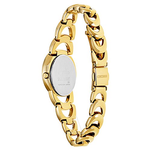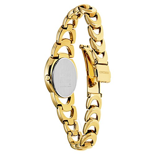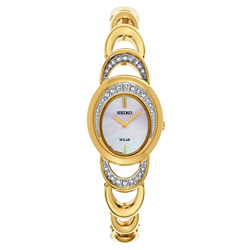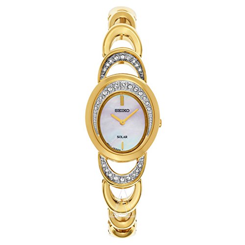 Gracefully embellish your wrist with this sophisticated Seiko Women's Solar Watch with Mother of Pearl Dial and Swarovski Crystal Accents. Powered by light energy, this stunning women's watch features 31 genuine crystals and luxurious goldtone details for an exceptionally elegant look.Feature