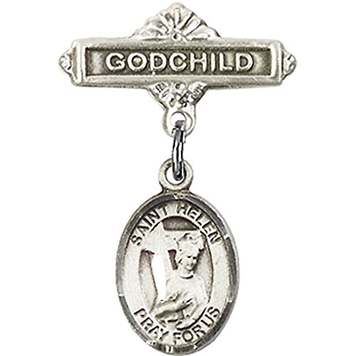 -. Title : Sterling Silver Baby Badge with St. Helen Charm and Godchild Badge Pin 1 X 5/8 inches