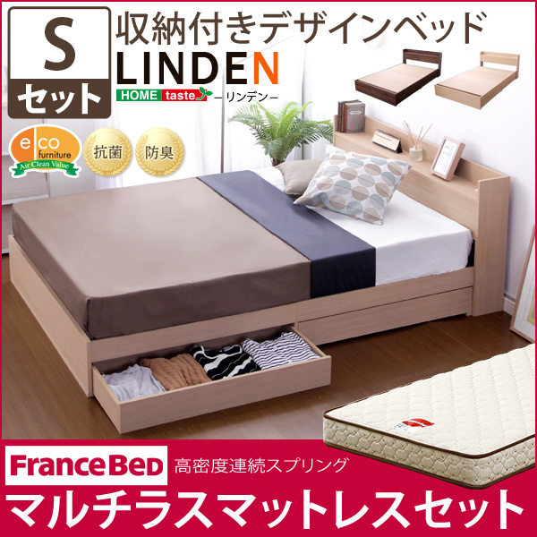 収納付きデザインベッド【リンデン-LINDEN-(シングル)】(マルチラススーパースプリングマットレス付き)