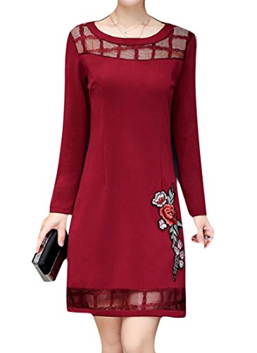 -. Title : Tootess 女性の長い袖の刺繍された固体色のドレスのプルオーバー