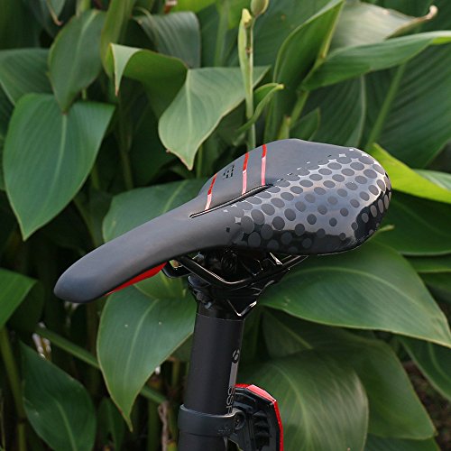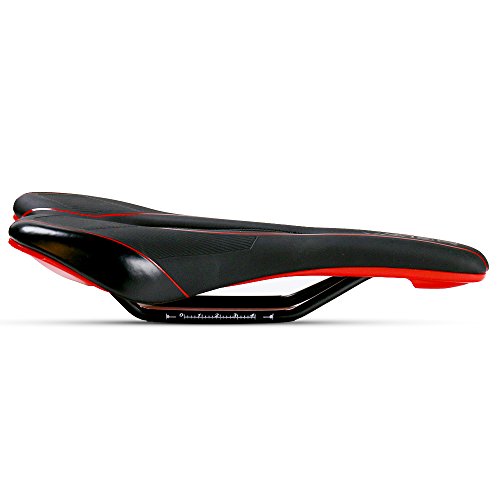 Product Description Bicycle seat is an essential part of the bicycle accessories, it directly affects you ride comfort, Finding a perfect bicycle saddle is like finding your life partner: It can be a long journey and you'll probably have a few missteps along the way. Some people find the perfect saddle (or soulmate) right away; for others, the journey can take years. But you will find DRBIKE bicycle saddle is the one you looking for Features: 1. Standard rail, suitable for Mountain Bike Road Bike etc. Plus, road bike needs light saddle with thin pad, mountain bike needs shock absorption saddle with thick pad.Choose the one you need. 2. Ergonomic design: The size of saddle is common, fits most sit bones, please check the size before you ordering, because everyone is a litte different. The thickness of every area varies to matches the anatomy. 3. Durable bike saddle seat is made of leather and metal, looking good and sitting comfortable.