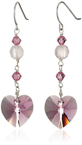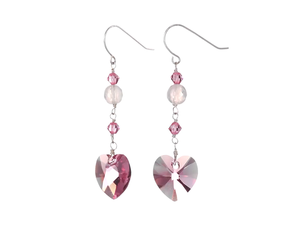 Faceted Rose Quartz Bead and Swarovski Elements Crystal Heart and Bicone Drop Earrings