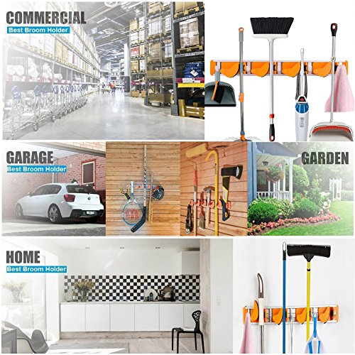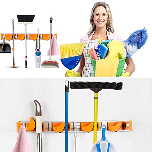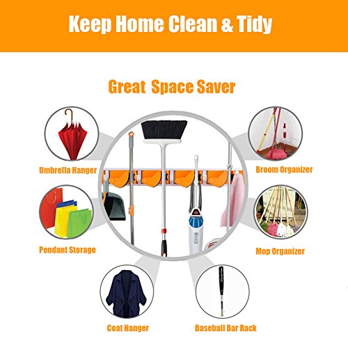 - ►Great Space Saver: Works great for organizing your mops, brooms, and brushes in minimal space.and cleverly design provide a solution to clean and organize your garage, garden, kitchen, laundry, offices and everywhere you want. It is strong, sturdy, long lasting and weatherproof.