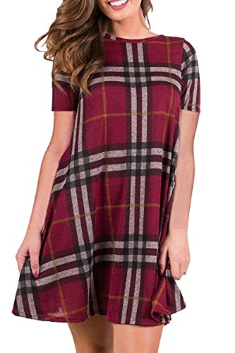 -. Feature : Flowy Tunic Dress: Super soft,Stretchy and Lightweight / Pull On closure / Features:Scoop Neck,Short Sleeve,Multicolor Plaid Striped P.R.Int with two Hidden Side Pockets Detail,Flowy and Cute This Dress is Bound to Be A Show Stopper / Occasion:Casual,Party,Working,Church etc.Simple and Classy design with Above knee length cut of the dress makes it Fashion and Suitable for Everyday and Formal occasions / Works Perfect with Sandals,Boots,Sweater Chain;Will Look Great with Leggings When it Gets Colder!