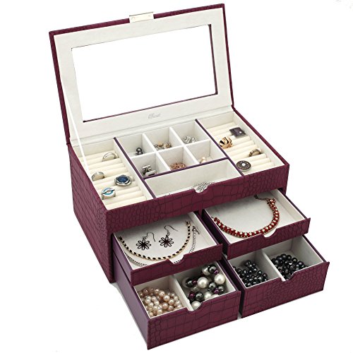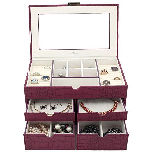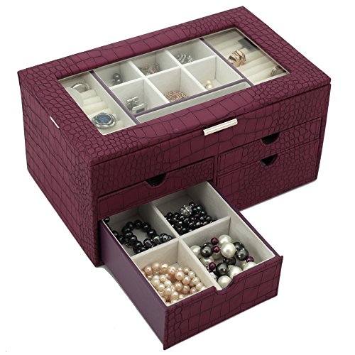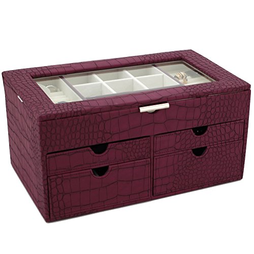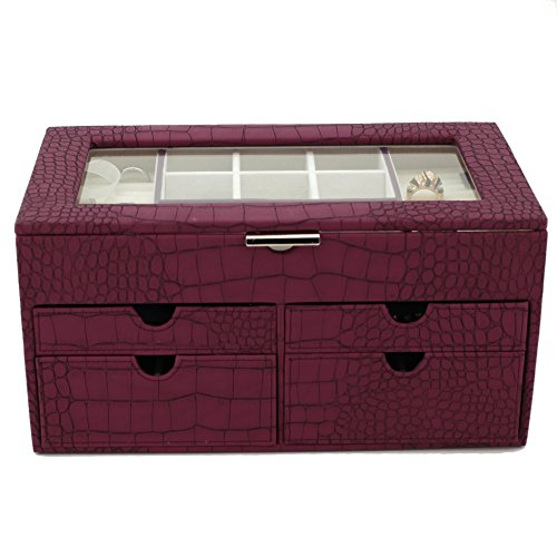 -. Binding : Watch -. Brand : Bucasi -. Color : white -. Department : Womens -. EAN : 0845923024128 -. Feature : Large Jewelry Box Keepsake Chest in Animal P.R.Int With Load Of Space to Organize all Jewelry / Jewelry box features Ring Trays, Separated Compartments, and Pull Out Drawers to Organize all your jewels / The Box Measures: 12" inches wide, 7.5" inches deep and 6" inches high. / The Exterior features a Classic Crocodile Embossed Pattern, while the interior is Made From a White Ivory Cream Fabric / Well Designed and Attactive Case Makes a Great Gift for Women and Ladies of all Ages. Also Available in Tan and Brown Comination -. Label : Bucasi -. Manufacturer : Bucasi -. Model : TS6531CRO -. MPN : TS6531CRO -. PartNumber : TS6531CRO -. ProductGroup : Watch -. ProductTypeName : WATCH -. Publisher : Bucasi -. Studio : Bucasi -. Title : Large Jewelry Box and Keepsake Chest Organizer Container in Animal P.R.Int Inspired Motif in Magenta / Purple / Wine Sangria color and White Ivory Crème Beige lining -. UPC : 845923024128