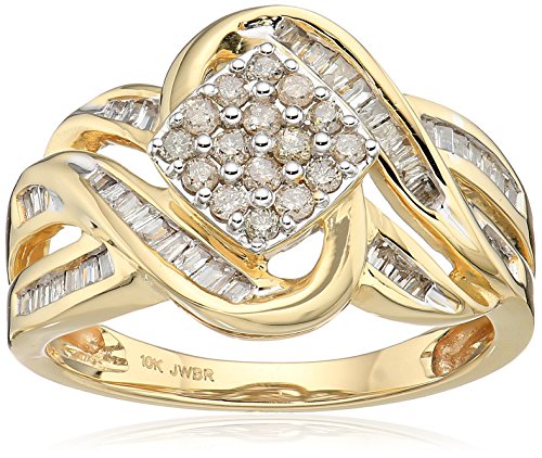 -. Feature : Classic cushion shape cluster with small white diamonds surrounded by Baguettes in 10k yellow gold - 1/2 cttw