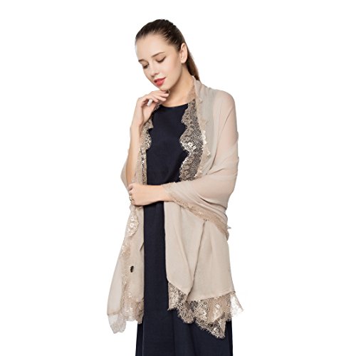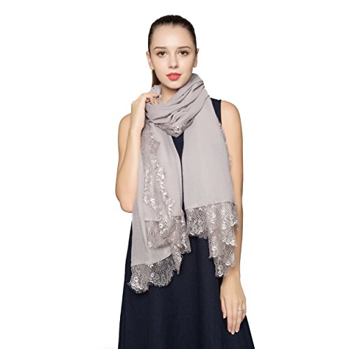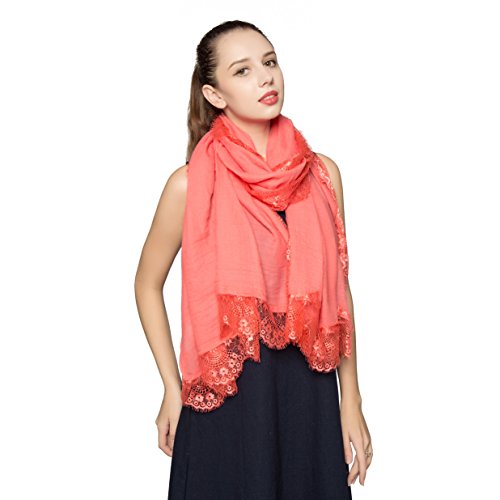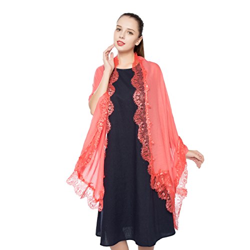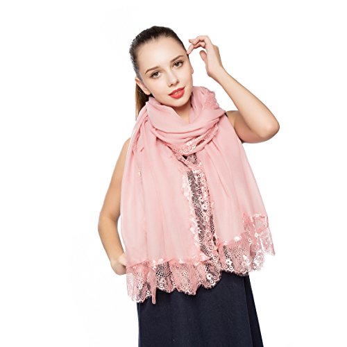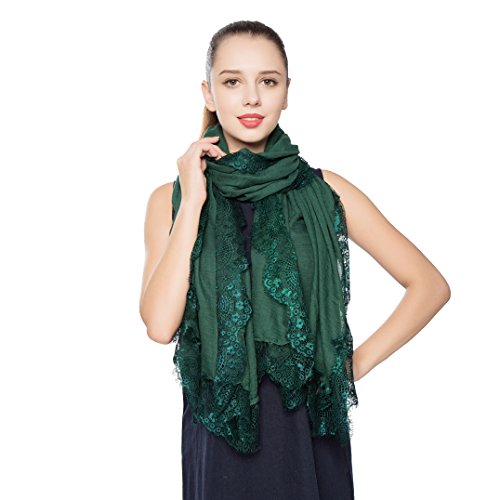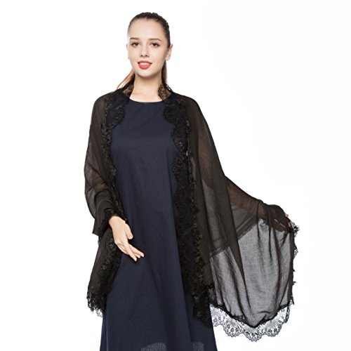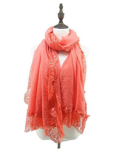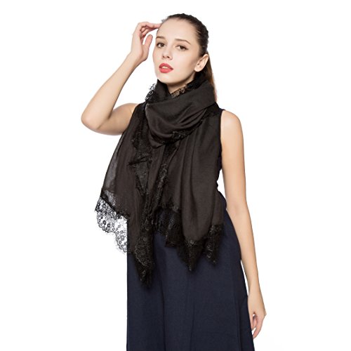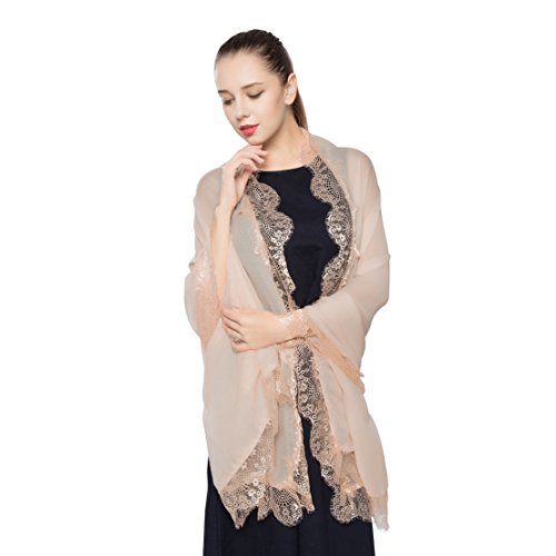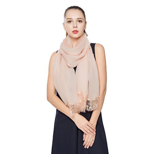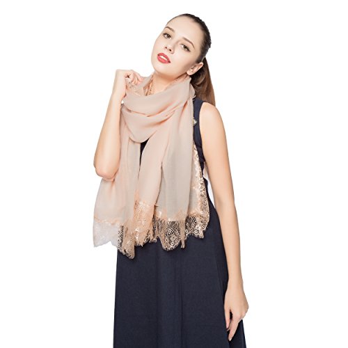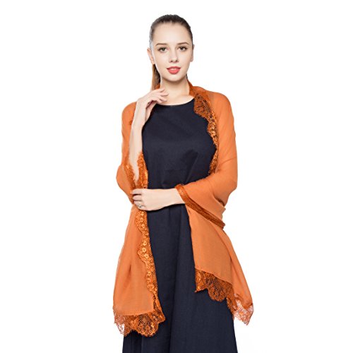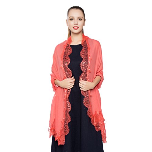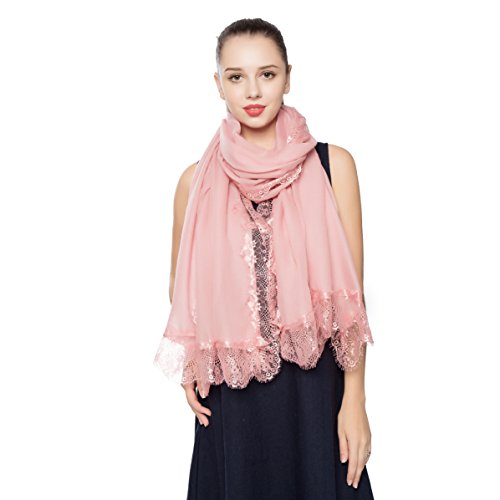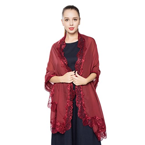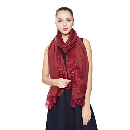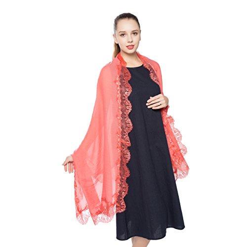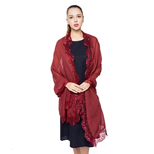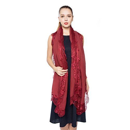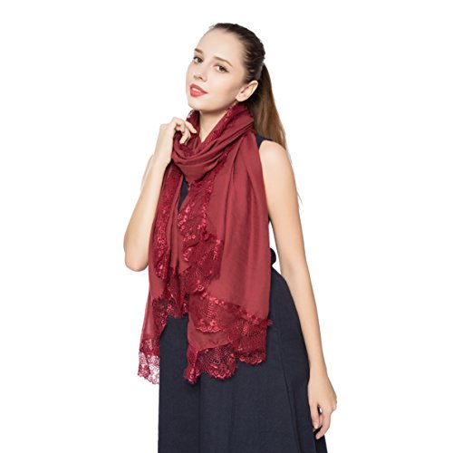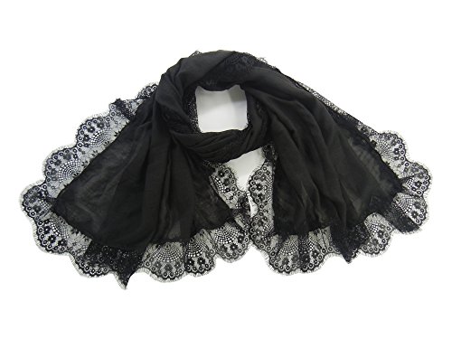 Feature: -Nice fabric without being bulky.This scarf is crafted from a sheer chiffon fabric that is lightweight woven, lending it a comfortable. -?Wild Fashion Style.Suitable for any occasion: Formal or Casual. Fashion lace gives you extra credit -?Appropriate size.You can wear in many ways: a warm scarf or a fashionable shawl, a perfect accessory for your holiday/party outfit or a great gift for your lover, family, friend and coworkers.?
