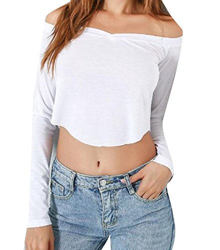 -. Title : Nicellyer Women Pure Color Off Shoulder Long Sleeve Short Pullover Tops