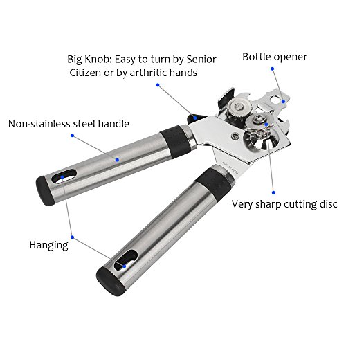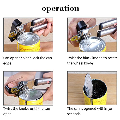 - Durable and Safe Can Opener! the opener is made of heavy duty german stainless steel with non-slip handle and sharp cut blade, which is very easy and safe to use.