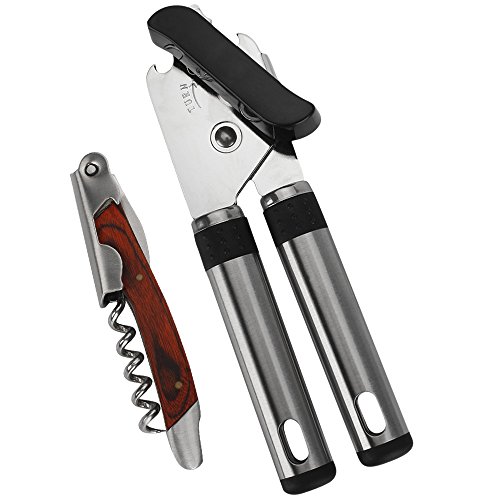 HUIRUI Heavy Duty Stainless Steel Can Opener Kitchen Manual Bottle Opener Smooth Edge with Non-slip Handle Sharp Blade Free Wine Corkscrew