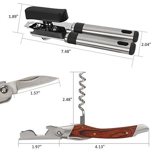 - Safety Can Opener plus Wine Corkscrew! You will get a smooth can opener and a wine corkscrew together when you order this item.
