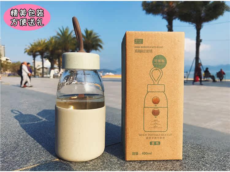 创意麦香防烫耐热玻璃杯女学生便携水杯韩版简约小清新随手水杯子