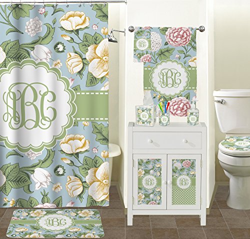 If you love a classic floral pattern, this is the design for you! The vintage flowers in this design are cream colored magnolias, surrounded by olive green leaves on a demure blue background. The design has a classic ribbon in olive green trimmed in white. The decorative scalloped label is in white and is the perfect place for your monogram for that personal touch to pull the entire design together.
