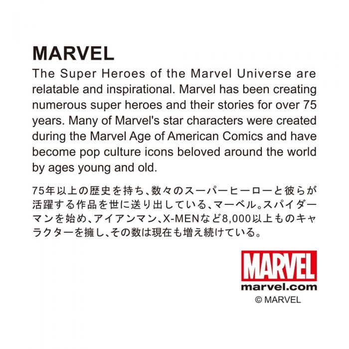 75년 이상의 역사를 소유,수많은 슈퍼 히어로와 그들이 활약하는 작품을 세상에 배웅해 있는다,《마베루》.스파이더 맨을 시작,아이언 맨,X-MEN등8,000이상이나의 캐릭터를옹고, 그수는 현재도고 있는다.