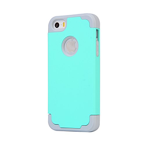iPhone SE Case,iPhone 5s Case,JanCalm 2in1 Hybrid Case Cover for iPhone 5/5S/SE .Dual Layer Hard Soft Rubber Slim Hybrid [Corner Protection] Combo 2-Piece Hard Bumper Soft Cover (Mint/Grey)