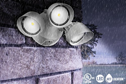 The 3 Head White LED Security Floodlight from Lithonia Lighting is the energy-efficient, low-maintenance lighting solution for security lighting saving an estimated $655 vs. incandescent fixtures over its life. This fixture produces an impressive 3000 lumens of light output. The integrated LEDs are rated at 50,000 hours of operation, so no bulbs are necessary. That means you don’t have to pull out the ladder to replace bulbs, it really lasts that long. This fixture is also energy star rated.