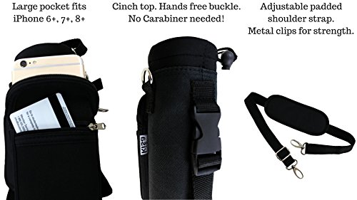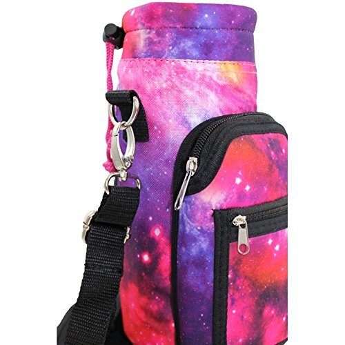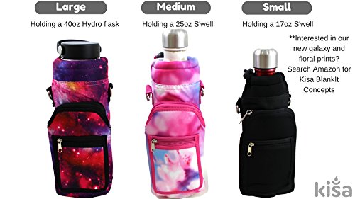 Designed with a robust canvas nylon shell padded/insulated neoprene inner to protect and insulate your water bottle from scratches dents. ***Please note that pattern placement may vary when choosing patterns. Adjustable Removable Shoulder Strap allows you to go 'Handsfree,' carry your water bottle comfortably. Buckle allows you to clip onto bags while traveling. No need for an extra carabiner! Adjustable Hand Strap makes holding, running and drinking, effortless comfortable.