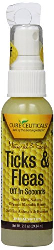 ReleaseDate : 2010-10-14 Studio : CureCeuticals Publisher : CureCeuticals Binding : Health and Beauty Product Description CureCeuticals Ticks Off Spray is 100% natural, contains NO DEET or CHEMICALS, non-toxic, completely safe for you, your pets and animals (not for use on cats or birds), and the environment. Rich in antioxidants, it contains 100% natural ingredients known to keep you and your pets and animals outdoor-happy and indoor-confident in the height of "pesty seasons". It contains 100% certified organic manuka honey which is known for its antiseptic, antibacterial, and anti-inflammatory properties; dead sea salt which is known to pull toxins from your skin and cleanse your skin of odor-causing bacteria, epsom salt that has been used for centuries for fungal problems, and many other skin conditions; and the natural scents of essential oils of eucalyptus or citrus and lemon are known to scare off annoying pests; combined with CureCeuticals® blend of malic acid and citric acid from fruit, it is a powerful cleansing product for both you and your pet. Safe for the environment, waterways, and bio-degradable. Use it on your skin (safe and good for broken skin), lightly on your clothes, pet's bedding, carpets, dogs and animals. Fresh natural scent. 0