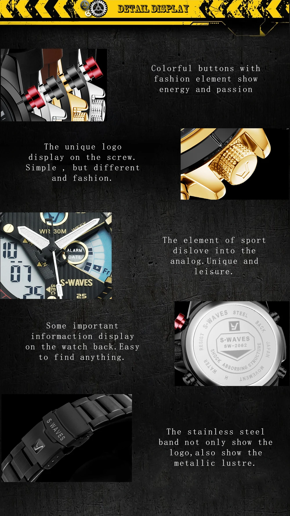 Feature:LED display,Stop Watch,Complete Calendar,Back Light,Week Display,Alarm,Repeater,Luminous Hands