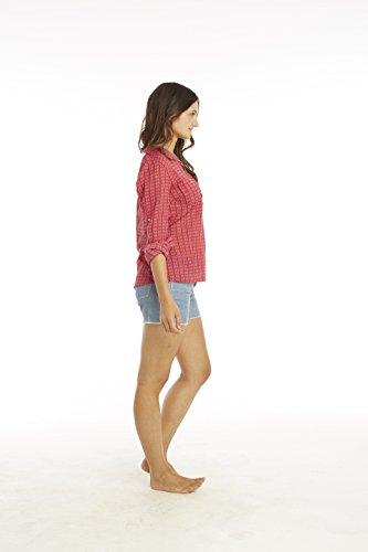 Relaxed fit with V neck, mandarin collar and four button close Long sleeves with button tabs for easy roll up Two chest pockets 26.5 inch long with shirttail hem Brand : Carve Designs Item model num : TWDG26 MPN(PartNumber) : TWDG26-640 EAN : 0844531042562