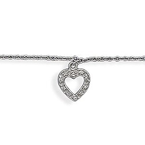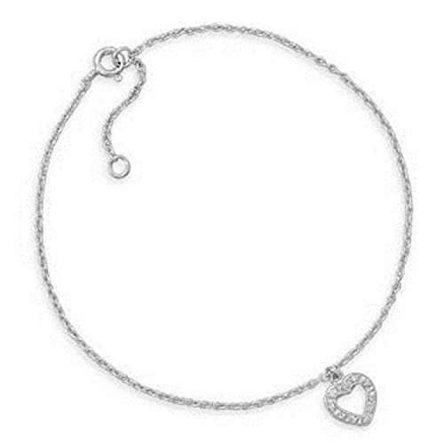 -. Title : Anklet Rhodium Over Sterling Silver with Pave Cubic Zirconia Heart