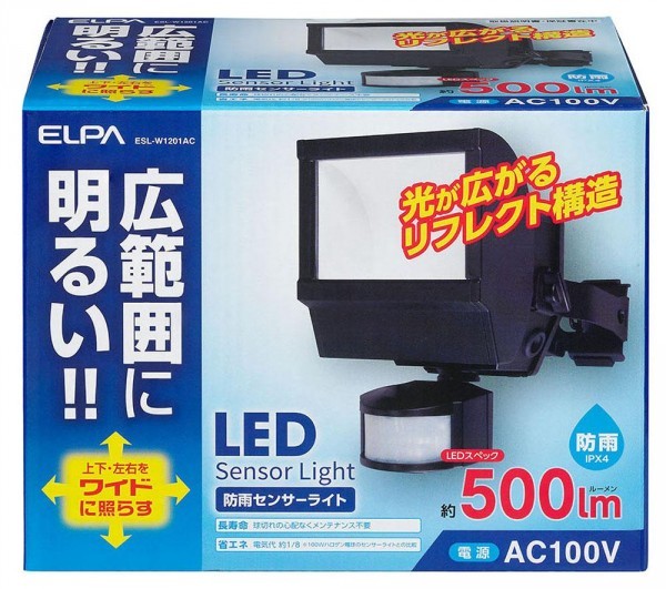 | 広範囲に明るい防雨センサーライト。500ルーメン。 |