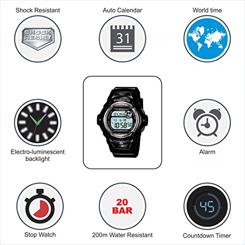 Brand, Seller, or Collection Name:Casio Model number:BG-169R-1DR (BX085) Part Number:BG-169R-1D Model Year:2017 Item Shape:Round Dial window material type:Mineral Display Type:Digital Case material:Plastic Case diameter:45 millimeters Case Thickness:13 millimeters Band Material:Resin Band width:25 millimeters Band Color:Black Dial color:Gray Calendar:Yes Special features:BG169R-1D Item weight:1.44 Ounces Movement:Quartz Water resistant depth:200 Meters