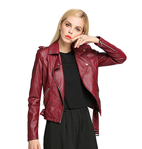 MIXMAX Women's Faux Leather Slim Fit Short Coat Moto Jacket