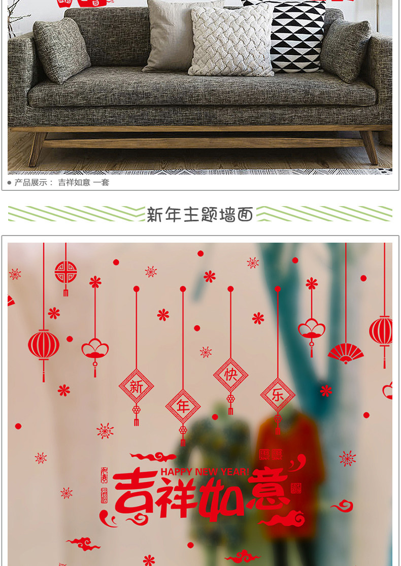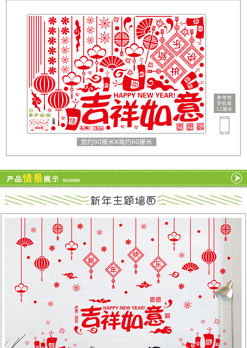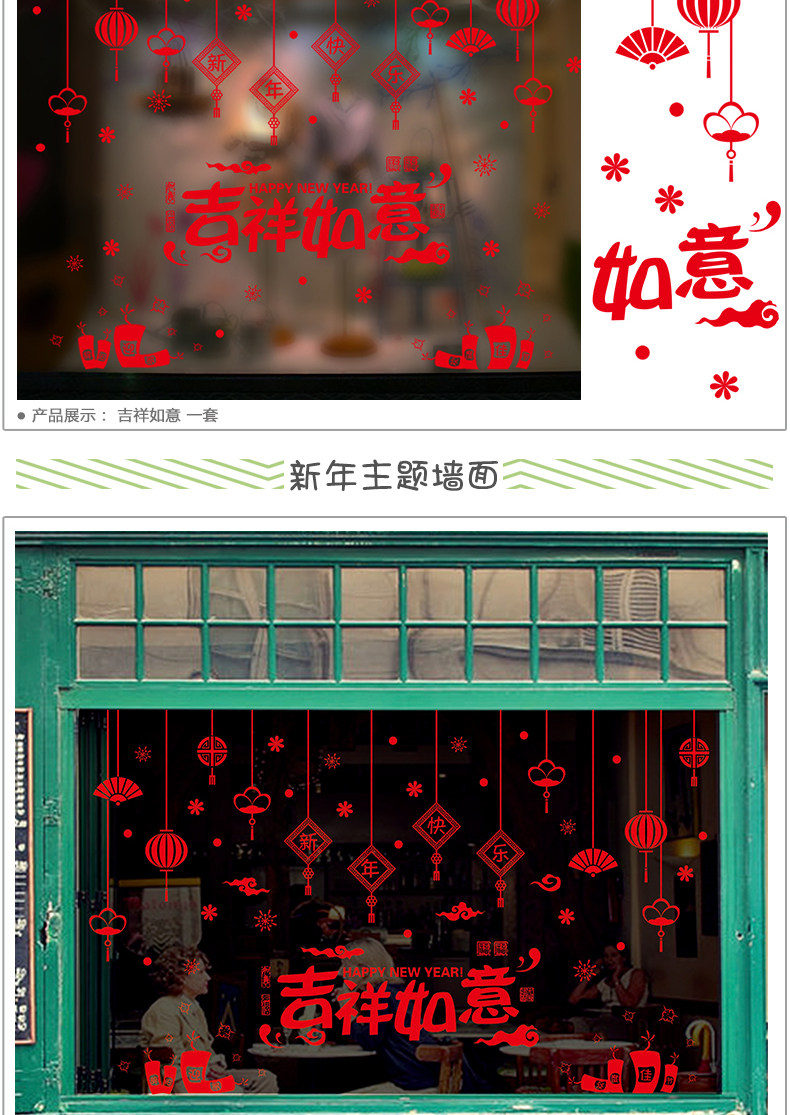 狗年贴纸吉祥如意挂饰玻璃移门窗户橱窗窗花贴可移除防水自粘贴纸