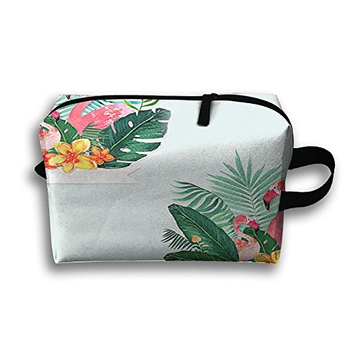 (LzVong)/Accessories/Wallets, Money Key Organizers/DIRECT FROM USA/LzVong Flamingos With Leaves Portable Makeup Pouch Travel Hangbag Full Print