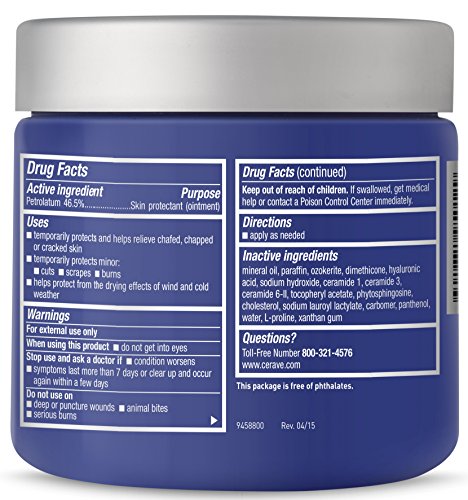 ReleaseDate : 2015-11-15 Studio : CeraVe Publisher : CeraVe Binding : Health and Beauty Product Description CeraVe Healing Ointment protects and soothes cracked and chafed skin with a non-greasy feel. All CeraVe products contain the vital ceramides healthy skin needs to help restore and maintain its natural protective barrier. This formula is excellent for acne prone skin, baby skincare, cracked and chafed skin, cracked and chafed skin, dry skin, extremely dry skin, itchy skin, minor burns and windburn, minor cuts and scrapes, National Eczema Association accepted, psoriasis prone skin. 0