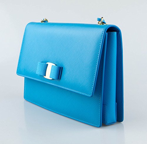 (SALVATORE FERRAGAMO.)/Accessories/Luggage, Bags Travel/DIRECT FROM USA/SALVATORE FERRAGAMO Cielo Blue Medium Ginny Leather Shoulder Handbag