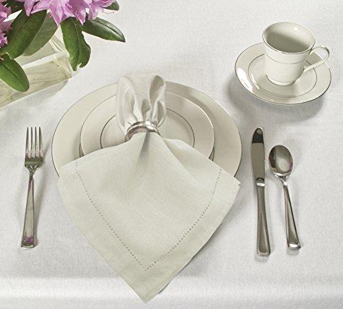 Elrene Home Fashions 026865885415 Solid Hemstitch Restaurant & Hotel Napkin, Set of 24, 18" x 18", Ivory