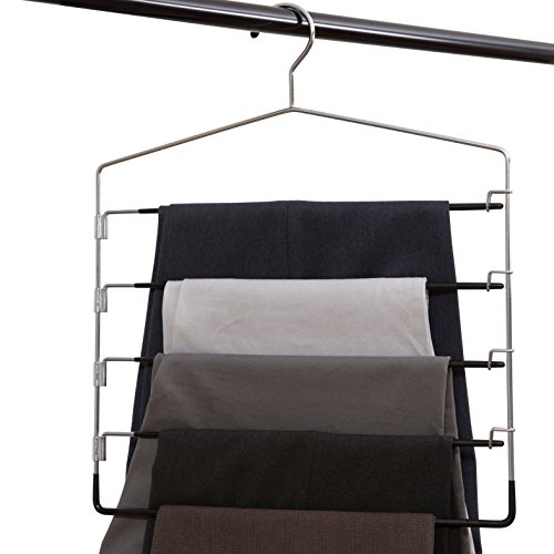 • Neatly Hung Trousers – Hang your trousers and slacks neatly and in order with the metal multi bar pants holder. Designed to hold four pairs of slacks without creasing them.
