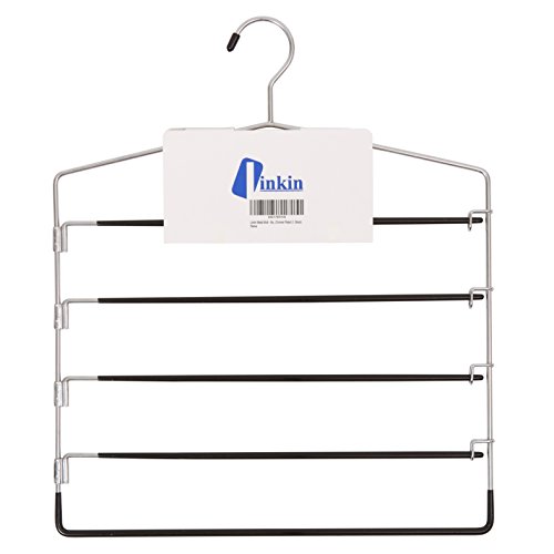 LINKIN Multi Bar Metal Pants And Trouser Hanger PVC Dipping, Chrome Plated And Black, Swing Arm Slack For Easy Trouser Placement (1, Black)