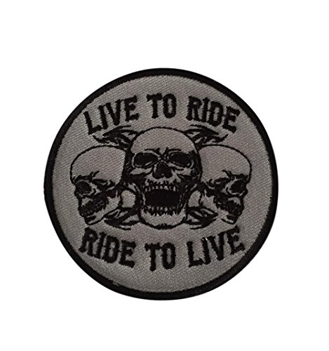 Product Description Live To Ride 3 Skulls Ride To Live Black on Gray Patch Patch measures 3 inches tall by 3 inches wide. Patch can be ironed, sewn or glued on. 0