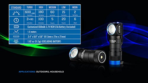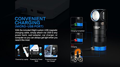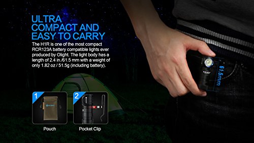 The Olight H1R Nova is a rechargeable upgrade to the previous H1 and 100 lumens brighter. Equipped with a 600 lumen burst, this light operates on an included RCR123 battery, offering up to 5 hours at 60 lumens! Keep it powered up with the convenient USB magnetic charging cable, so you can charge your light easily. The H1R Nova is impressively lightweight at 1.82 ounces and can be removed from its headband to become a compact EDC flashlight. With a magnetized tailcap and included clip, this tiny flashlight is ready to go with you everywhere! The H1R Nova Headlamp is available in cool white or neutral white LEDs. Cool white gives high contrast detail while neutral white provides a sunlight-like beam, offering better appearance of color and fog-cutting capabilities. Choose the one that's right for you! Specifications: * LED: Cree XM-L2 * Output/ Runtime: --- Turbo: 600~180 lumen / 3 80 min --- High: 180 lumen / 100 min --- Mid: 60 lumen / 5 hr --- Low: 15 lumen / 20 hr --- Lower: 2 lumen / 6 days * Battery: 16340 (RCR123A) * Beam Distance: 79 yards (72m) * Intensity: 1280cd * Waterproof: IPX8 (2m submersible) * Impact Resistance: 1.5m * Dimensions: --- Length: 2.4 in / 61.5mm --- Head: 0.8 in / 21mm --- Body: 0.8 in / 21mm * Weight: 1.82 oz / 51.5g (including battery) Features: * Olight USB magnetic charging cable included (compatible with S1R/S2R/S10RIII/S30RIII) * Utilizes CREE XM-L2 LED (NW/CW) paired with bead TIR optic lens, giving a perfect close-range illumination experience * Gradual brightness changes. When turned on/off on medium, high and turbo modes, it will light up or fade gradually to protect eyes from the stimulation caused by sudden brightness changes to protect * 180 degrees smooth vertical rotation for the light on the silicone mount * SOS mode available for emergency uses 0 |