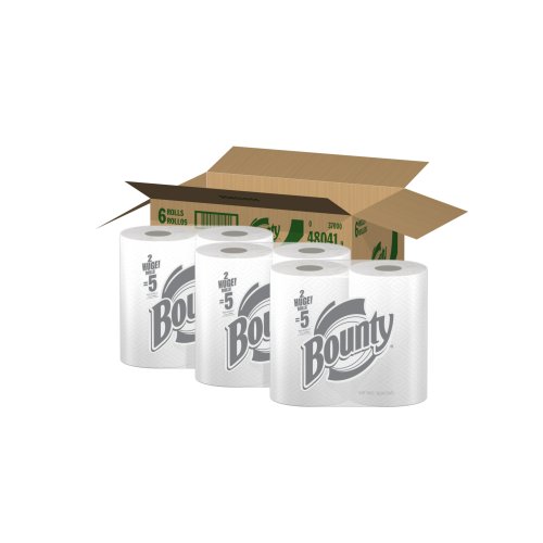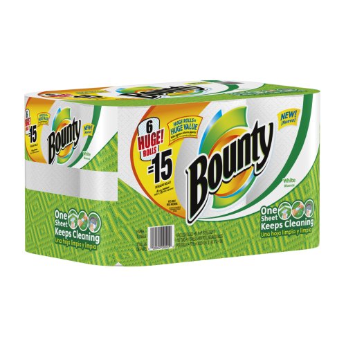 -. Feature : Super strength, super absorbency / Cloth-like durability / One sheet keeps cleaning / The thick quicker picker upper / Ships in Certified Frustration-Free Packaging / Huge Roll = Huge Value vs. Bounty 1 Regular Roll / Thick and absorbent