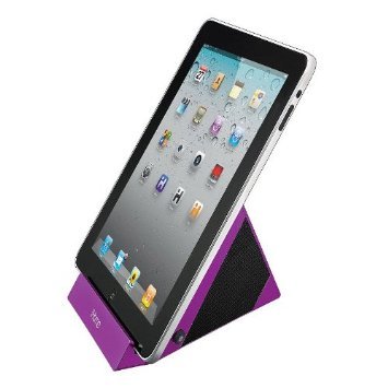 -. Title : Sleek Stereo Speaker System/Stand for iPad, Tablet PC, Smartphone, iPod or other Audio Devices (Purple)