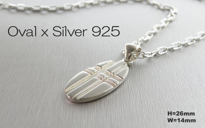 楕円プレートにいくつものクロスラインが刻まれているシルバーネックレス!どんなスタイルにも合わせやすい万能デザインです★
