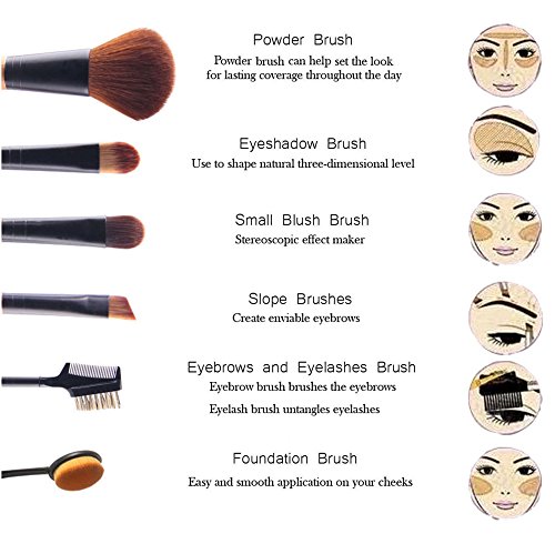 Makeup Brush Set | 6 Piece Essential No Shed No Animal Hair Super Soft Bristle Including A Contour Makeup Brush EyeBrow Brush and Oval Brush