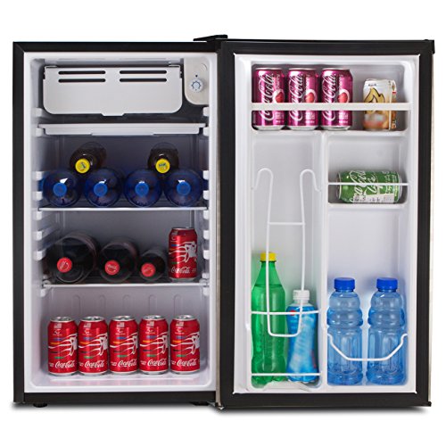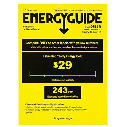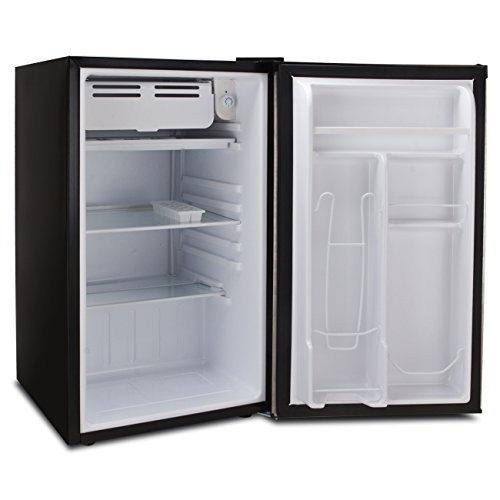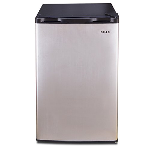 Della 3.2 Cu. Ft. Compact Refrigerator, is energy efficient refrigeration in a convenient, compact unit. Perfect for small spaces, this model makes a great addition to the student dorm room or small office. With a reversible door hinge, an integrated door handle and a smooth-back design, this handy refrigerator will fit almost anywhere Features: Ideal for smaller areas such as student dormitories, wet bars, apartments and condos. Reversible door hinge adapts easily for right or left door opening Perfect place to store your microwave or other items when space constrained Adjustable shelves help contain messes, so your refrigerator stays clean Stock and dispense all of your favorite beverages with ease Integrated door handle Sleek look that easily enhances most types of existing decor Strong shelves for maximum storage versatility Integrated door shelving with tall bottle storage It also uses , natural R600a refrigerant to help our environment Thermostat Offers easy adjustments to keep your snacks at an ideal temperature Specifications: Color: Stainless Steel Refrigerator Type: Compact Power: 115v/60hzAmp:&: R600aCapacity (Cu. Ft.): 3.2Freezer Capacity (Cu. Ft.): 0.3Fresh Food Capacity (Cu. Ft.): 2.9Door Style: Single Door Freezer Compartment: Yes Reversible Door: Yes Interior Light: Nonadjustable Legs: Yes Energy consumption(Kwh/24h): 243kWHTemperature Control: Safety Listing: Yes Overall Dimension: 17-3/4"(W) x 19-1/4"(L) x 31-1/4"(H)Package Include: Compact Refrigerator Manual*Note Our digital images are as accurate as possible. However, different monitors may cause colors to vary slightly*.Feature