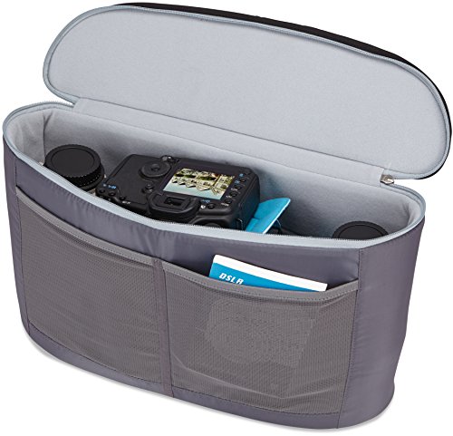 Removable compartment with dual-density bottom for camera body with up to Canon EF 24-105mm f/4 L IS USM Lens attached, org for 2 lenses & flash, with mesh pocket for cleaning supplies or manual