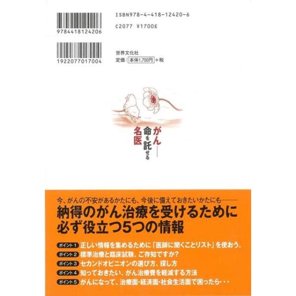 【商品基本情報】 商品名称:がん-命を託せる名医 著者/出版社:家庭画報 編/家庭画報 編 初版発行日:2012/10/05 サイズ:A5判 ページ数:208 ISBN/JAN:9784418124206/4528189479845