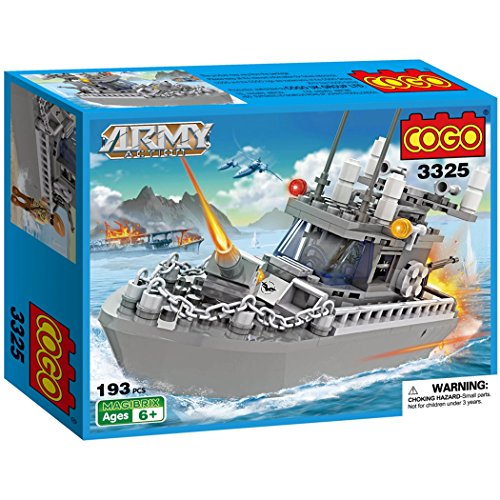 -. Title : COGO Army Warship Toys Building Blocks Patrol Boat Toys for Boys DIY Construction Brick Set 193 Pieces - 3325