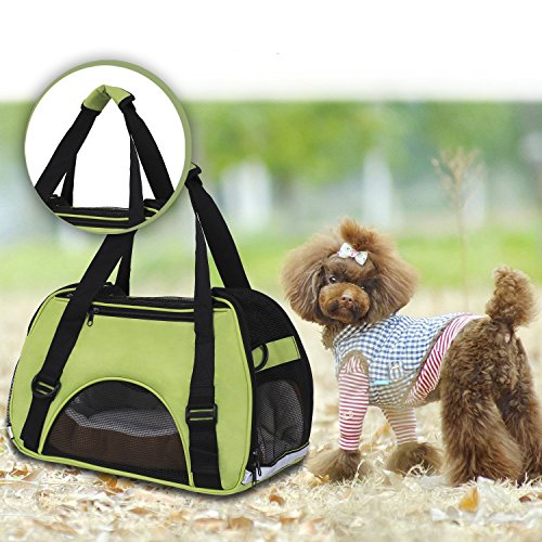 -. Feature : Ventilated - made from durable & breathable materials, mesh panels allow maximum airflow. / Comfortable - removable fleece bed, give your pet more space and convenience. / Eeasy to carry - lightweight, foldable handbag, with adjustable padded shoulder strap. / For pets up to 15 lbs, perfect for puppies cats rabbits and other small animals. / Warranty:12 Months