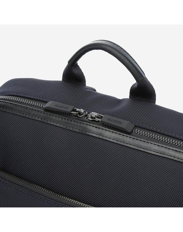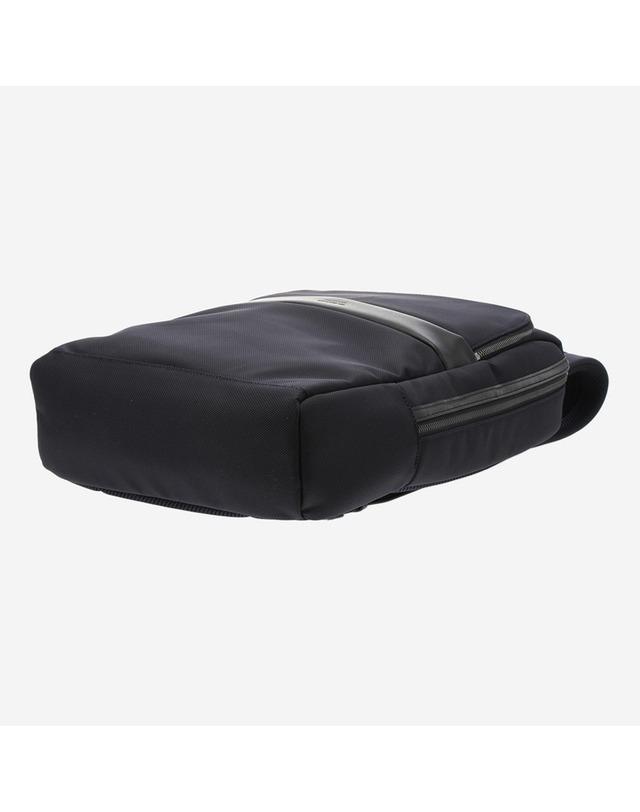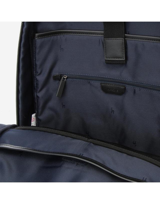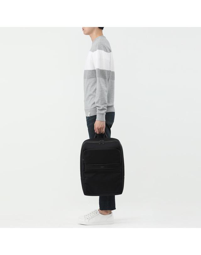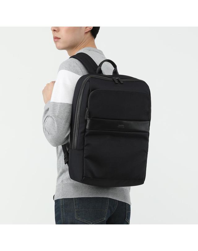 가볍고 튼튼한 나일론 소재에 인조 가죽을 배색하여 고급스러운 외관을 연출한 백팩입니다.