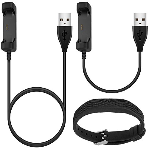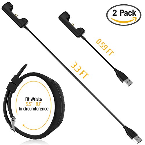 Charger with Wristband for Fitbit Flex 2, AFUNTA 2 Pack 3.3 feet and 0.56ft USB Charging Cable Cradle Dock Adapter with Reset Button, with 1 Black Silicone Band with Buckle